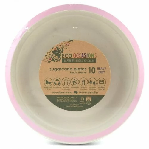 Alpen Sugarcane Lunch Plates 180mm Light Pink 10 Pack