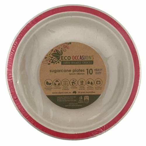 Alpen Sugarcane Lunch Plates 180mm Red 10 Pack Eco Range