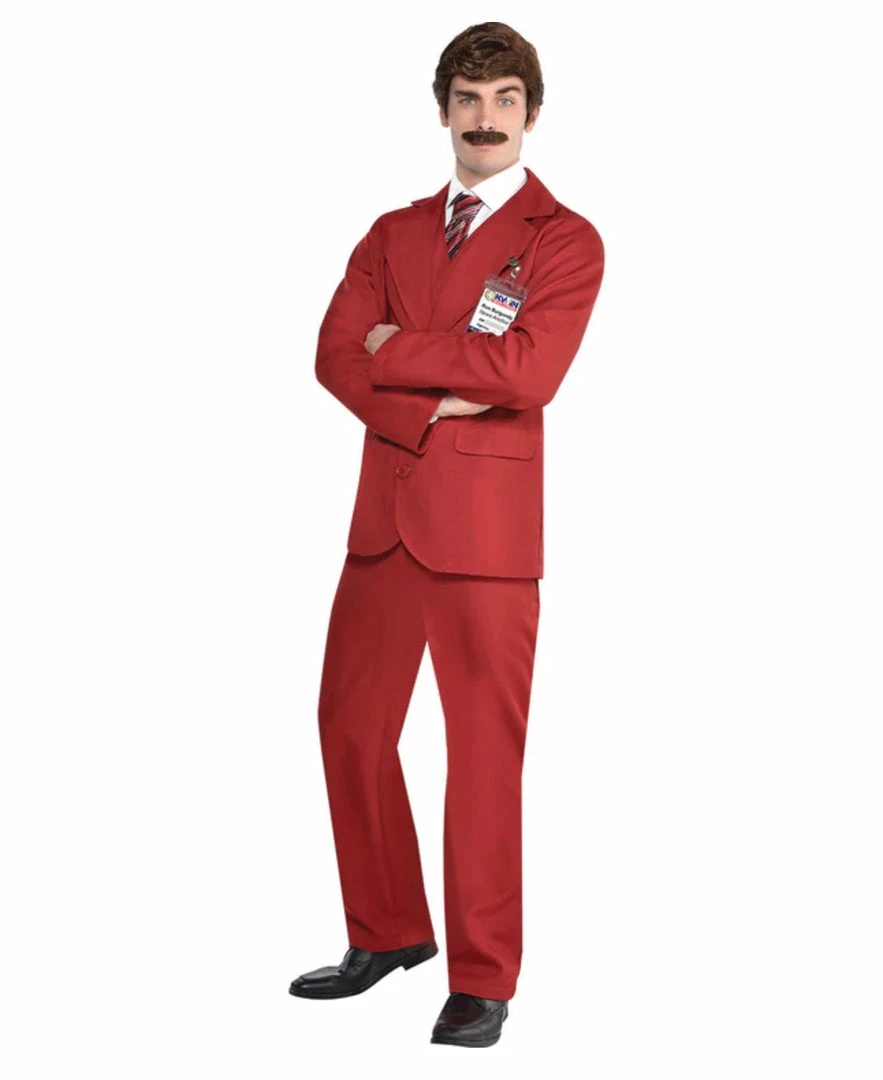 Transform into San Diego’s finest newsreader with this Ron Burgundy Mens Costume. The costume comes with a dark red suit jacket, dark red trousers, a red, yellow and black striped tie, and an ID badge with the stations and information based on the badge worn by Ron Burgundy in the film. Finish the look with an outstanding moustache and sophisticated hairdo.