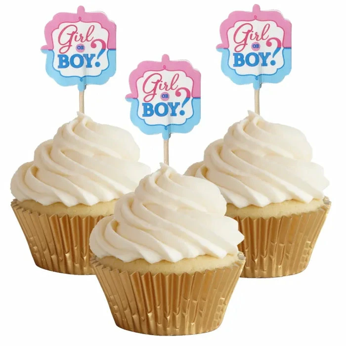 These cupcake picks are perfect for your Gender Reveal party! Surprise your guests by baking plain cupcakes with either pink or blue sprinkles hidden inside and top with these picks. Then when the big moment comes, have your guests bite into the cupcakes to reveal if it is a girl or boy!