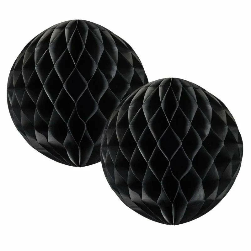 Decorative Honeycomb Ball 2 Pack 15cm – Black. Decorate your party tables or your party ceiling with this decorative honeycomb ball 2 pack 15cm in black. The smaller size makes them more versatile to hang or place as table decor.