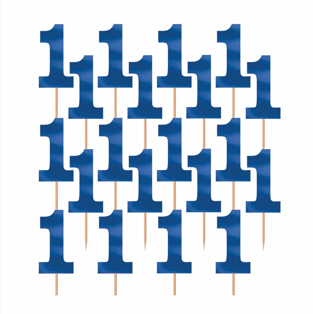 Pack of 36 Boys 1st Birthday Blue Foil Cupcake Picks.