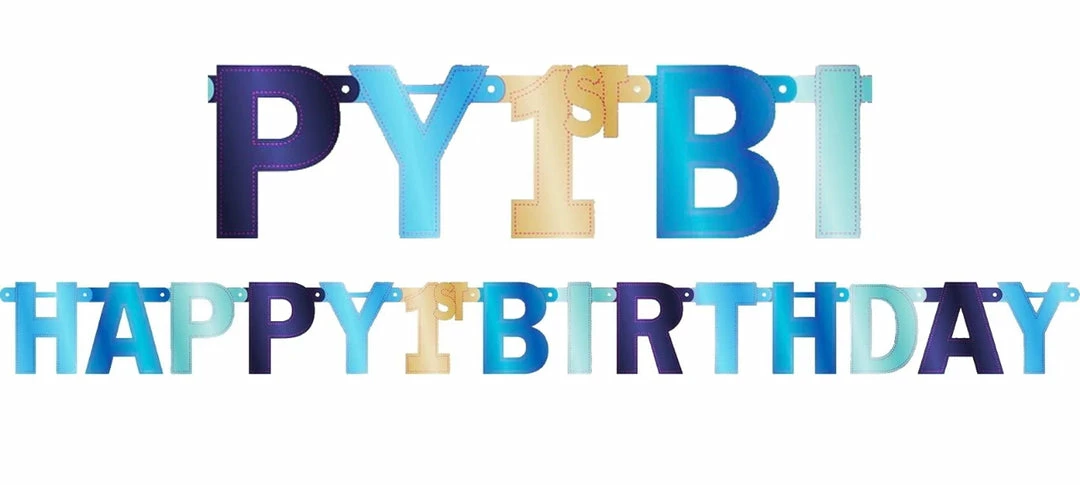 Featuring blue and gold foil “Happy 1st Birthday” lettering this jointed letter banner makes a beautiful way to decorate your little boy’s 1st birthday party room. Simply hang it on a wall, from the ceiling, or outside on the pergola for a sparkling 1st birthday celebration.