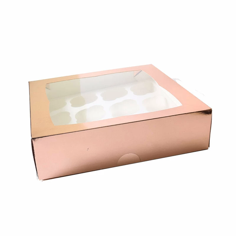Party Animal Direct Cake Boxes ROSE GOLD Cupcake Box With PVC Window (holds 12 Cupcakes)