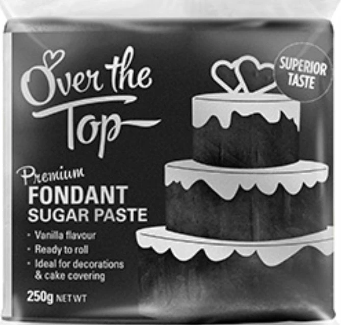 This Over The Top Black Fondant is a ready to roll fondant sugar paste icing great for decorations and cake covering. Comes in a 250g pack. Made in Italy and specifically formulated for the Australian climate.
