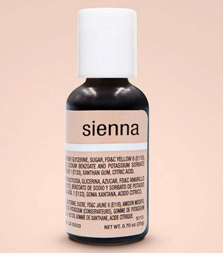 This Chefmaster Liqua-Gel Sienna is a highly concentrated, vibrant food colouring that mix easily and provide consistent tones without altering the texturing of your product. Colours are intense, bright and vivid. Easy to mix and disperse instantly. Gels come in 0.7oz (20ml) squeeze bottle with twist-top lids, so you can add drops for easy-to-repeat colors every time. Use in whipped icing, buttercream, fondant, cookies, and more.