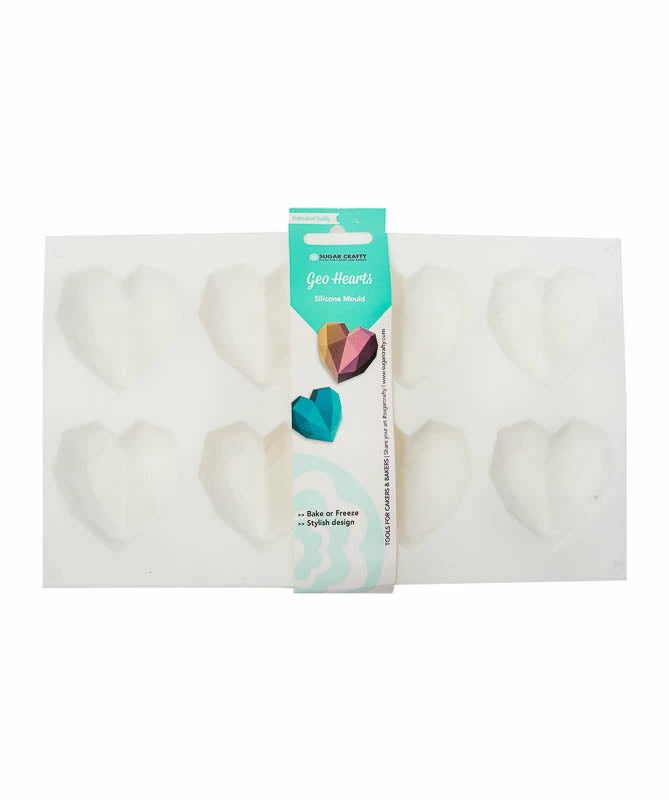 The Geo Hearts mould is made out of a silicone system specially formulated for use in food and confectionary and complies to FDA regulations. Can bake up to 200 degrees.
