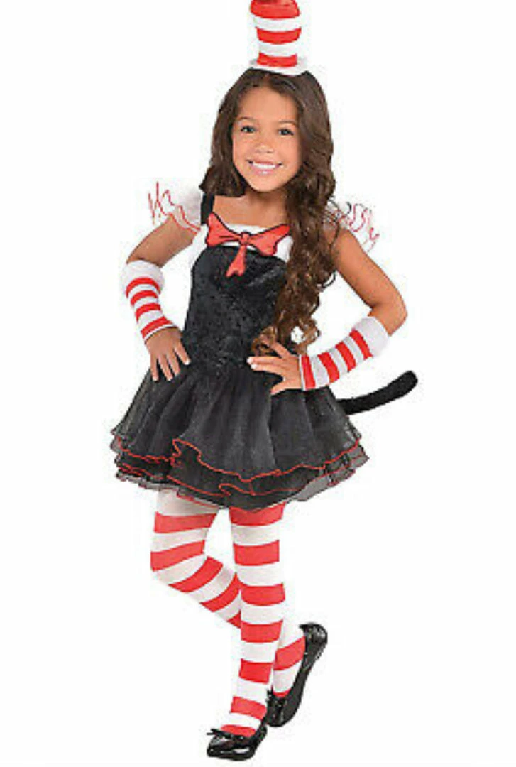 Kids Cat In The Hat Costume Dr Seuss Fancy Dress Girls