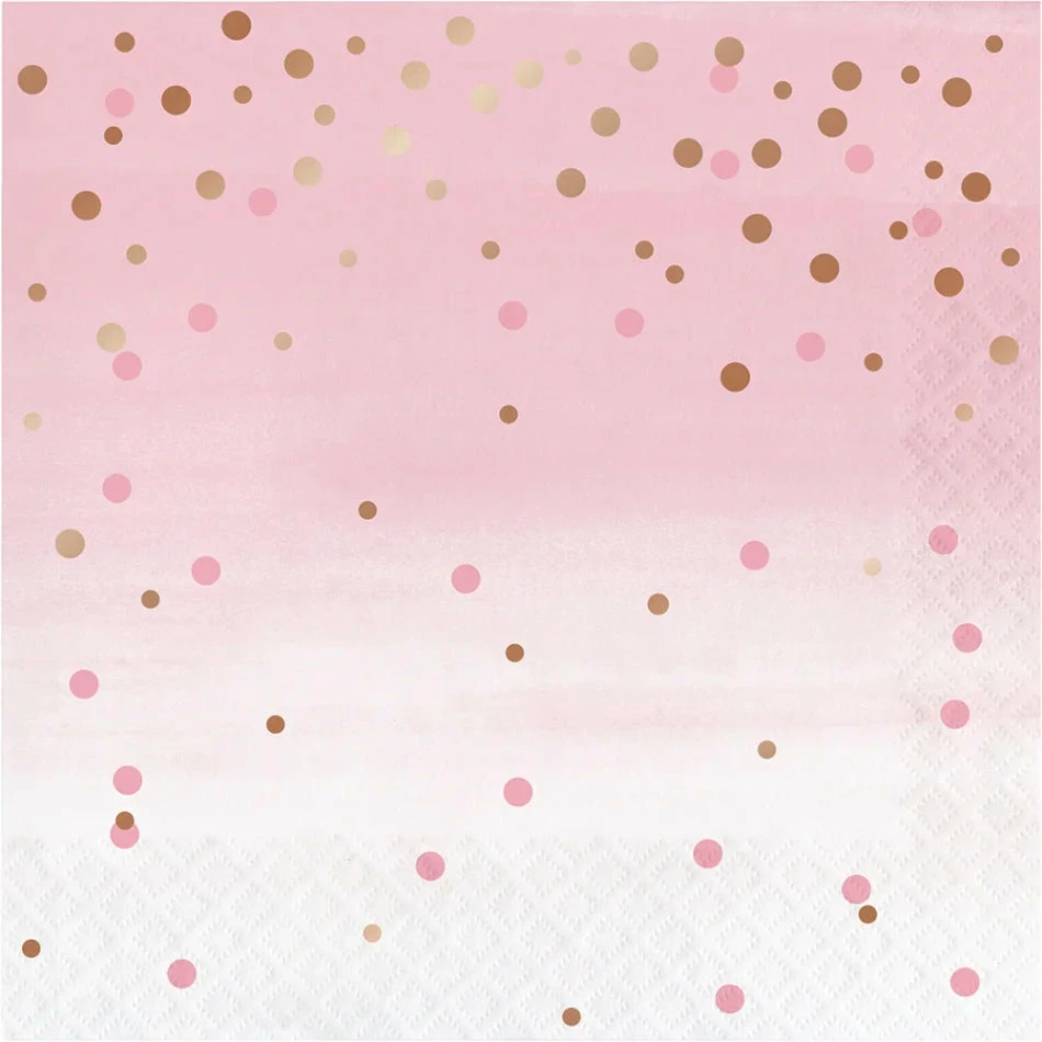 Pack 16 Rose All Day Rose Gold Foil Dot Napkins.