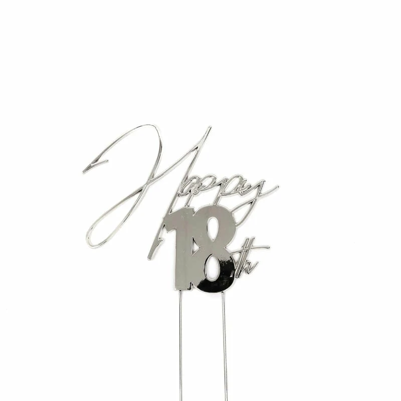 Party Animal Direct HAPPY 18TH SILVER METAL CAKE TOPPER