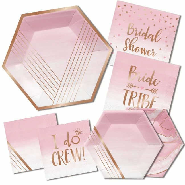 The napkins are a beautiful pink tone and have the words “I Do Crew” in a lovely rose gold print.