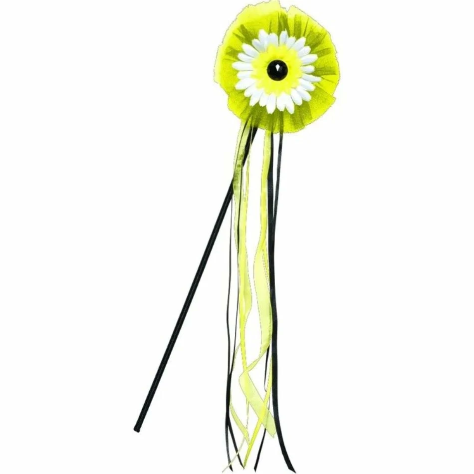 Bumble Fairy Wand features a long black rod topped with a Daisy flower with strings of black and yellow ribbons. Not suitable for children under the age of 3.
