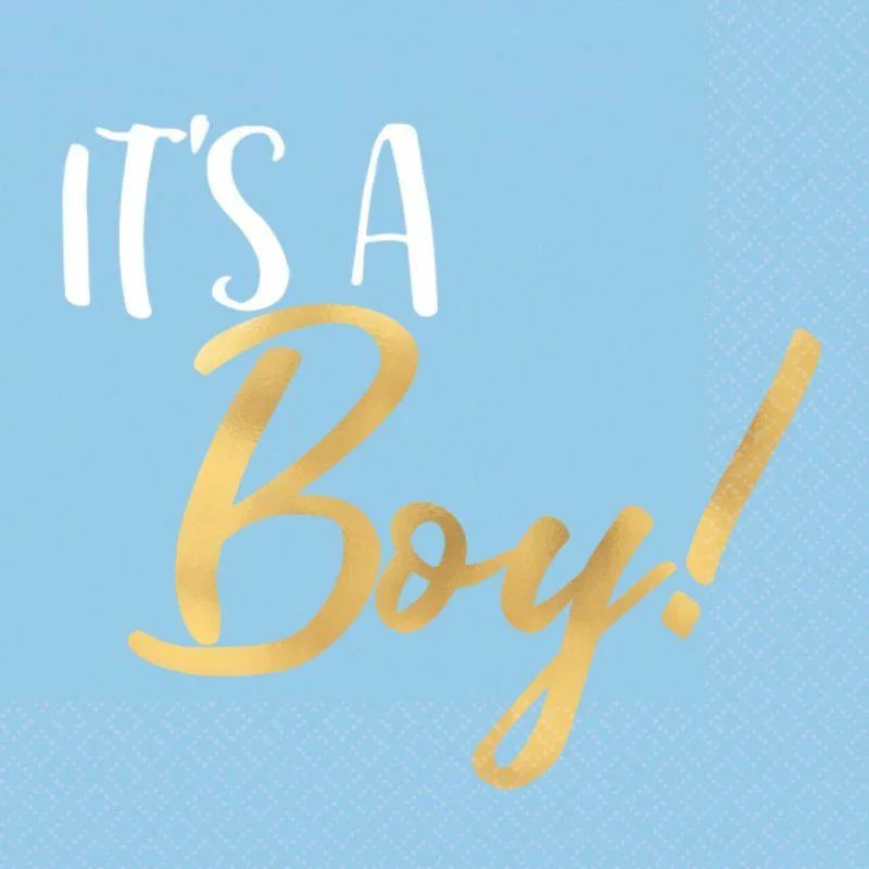 Metallic Gold & Blue It’s a Boy Beverage Napkins product details: