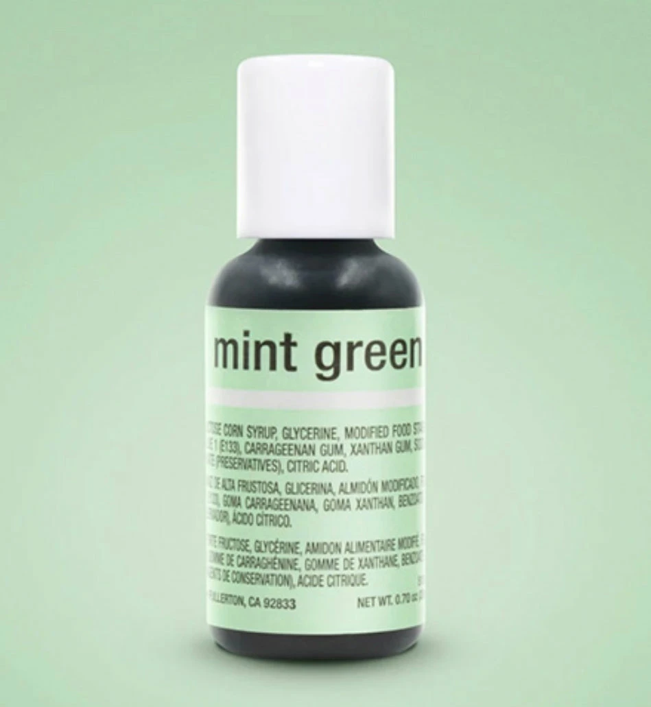 This Chefmaster Liqua-Gel Mint Green is a highly concentrated, vibrant food colouring that mix easily and provide consistent tones without altering the texturing of your product. Colours are intense, bright and vivid. Easy to mix and disperse instantly. Gels come in 0.7oz (20ml) squeeze bottle with twist-top lids, so you can add drops for easy-to-repeat colors every time. Use in whipped icing, buttercream, fondant, cookies, and more.
