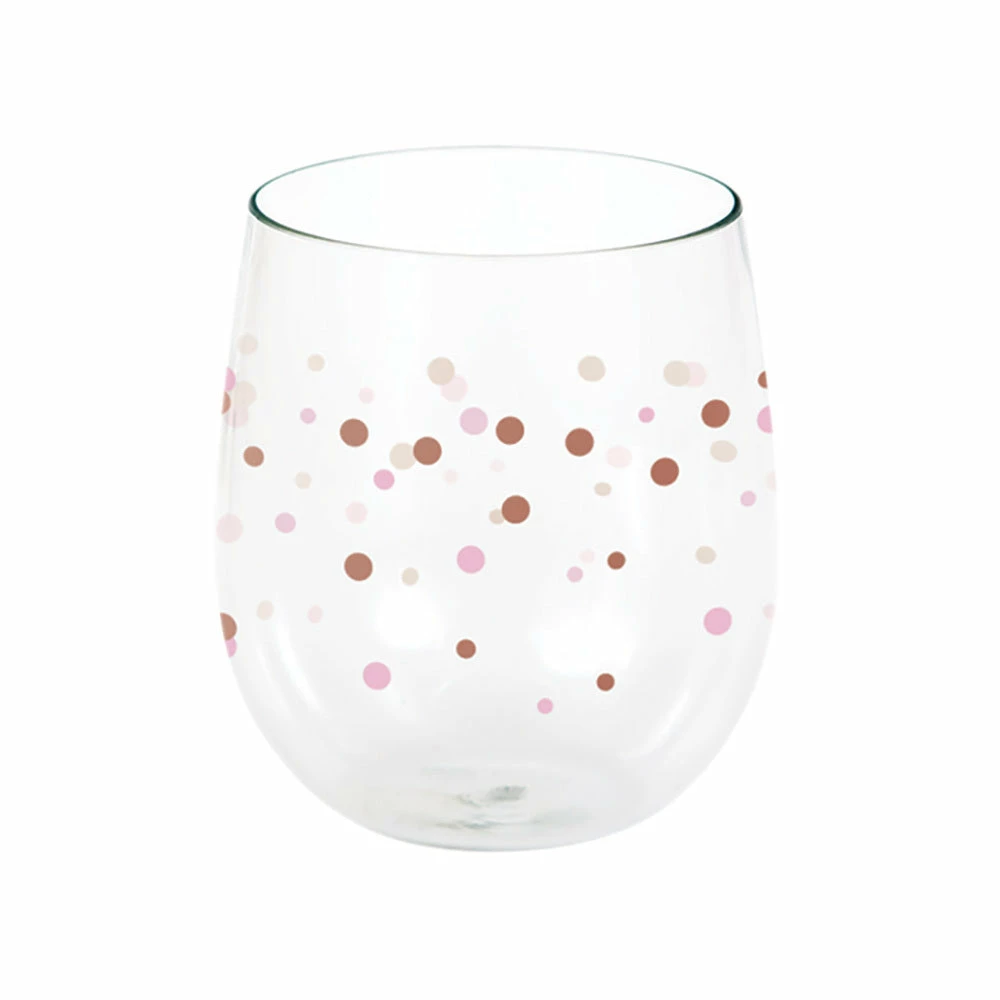 Bridal Shower Rose Gold Dot Stemless Wine Glass 414ml.
