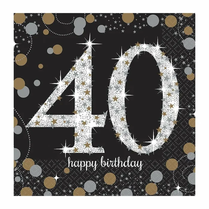 Pack of 16 Sparkling Celebration 40th birthday small napkins.
