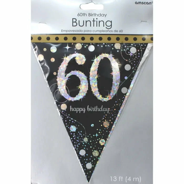 With a shiny, iridescent bubble design on a black background this banner will catch everyone’s eye at your 60th birthday party! Team it with other Sparkling Celebration tableware and decorations for a truly dazzling 60th birthday setting!