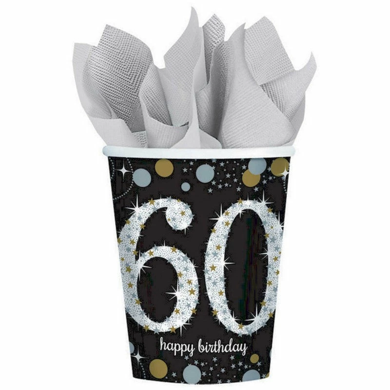 Black, Gold & Silver 60th Birthday Sparkling Celebration Paper Cups 266ml Pack of 8 product details: