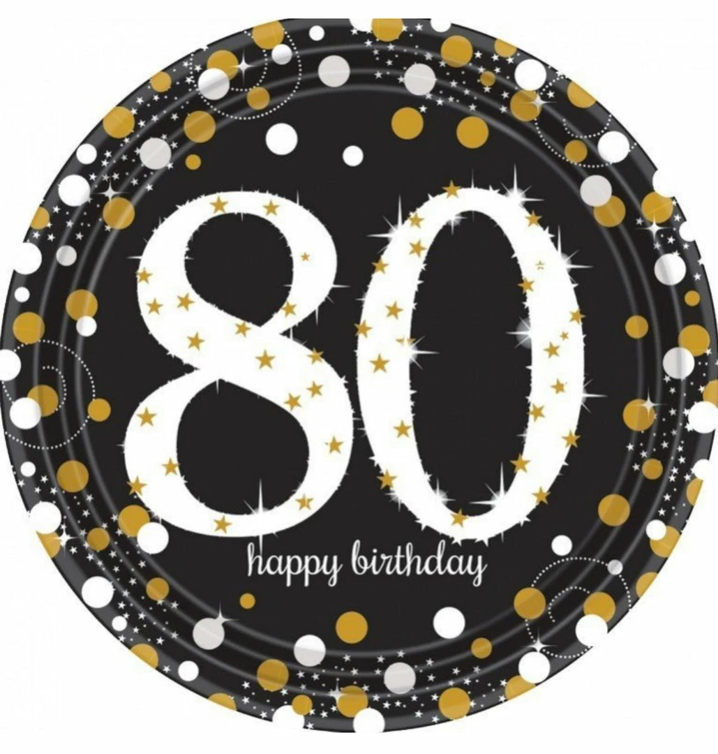 Give your 80th birthday meals a glamorous touch with our Sparkling Celebration 80th Birthday Plates!