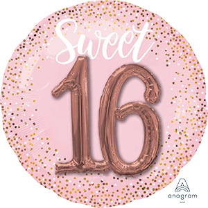 Sweet 16 Rose Gold Foil Balloon 27″ with 3D effect . There is 1 foil balloon in a pack. The balloon needs helium to be inflated. It is automatic self sealing.