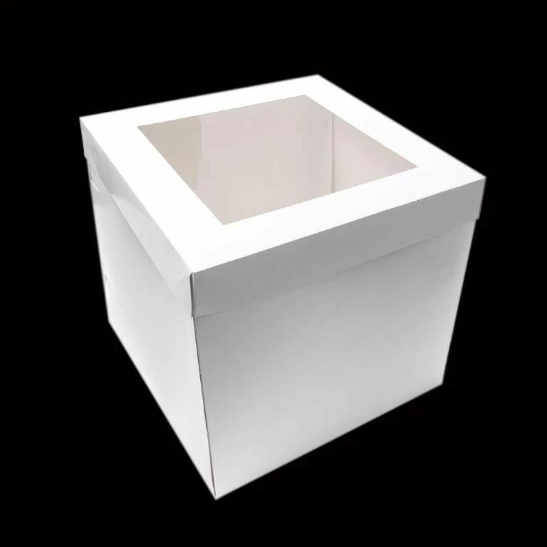 These original designed tall cake boxes are made fromΒ high qualityΒ white milkboard and come in 2 pieces. Β A lid with WINDOW and the base, that allows for opening on the side to slip the cakes out.